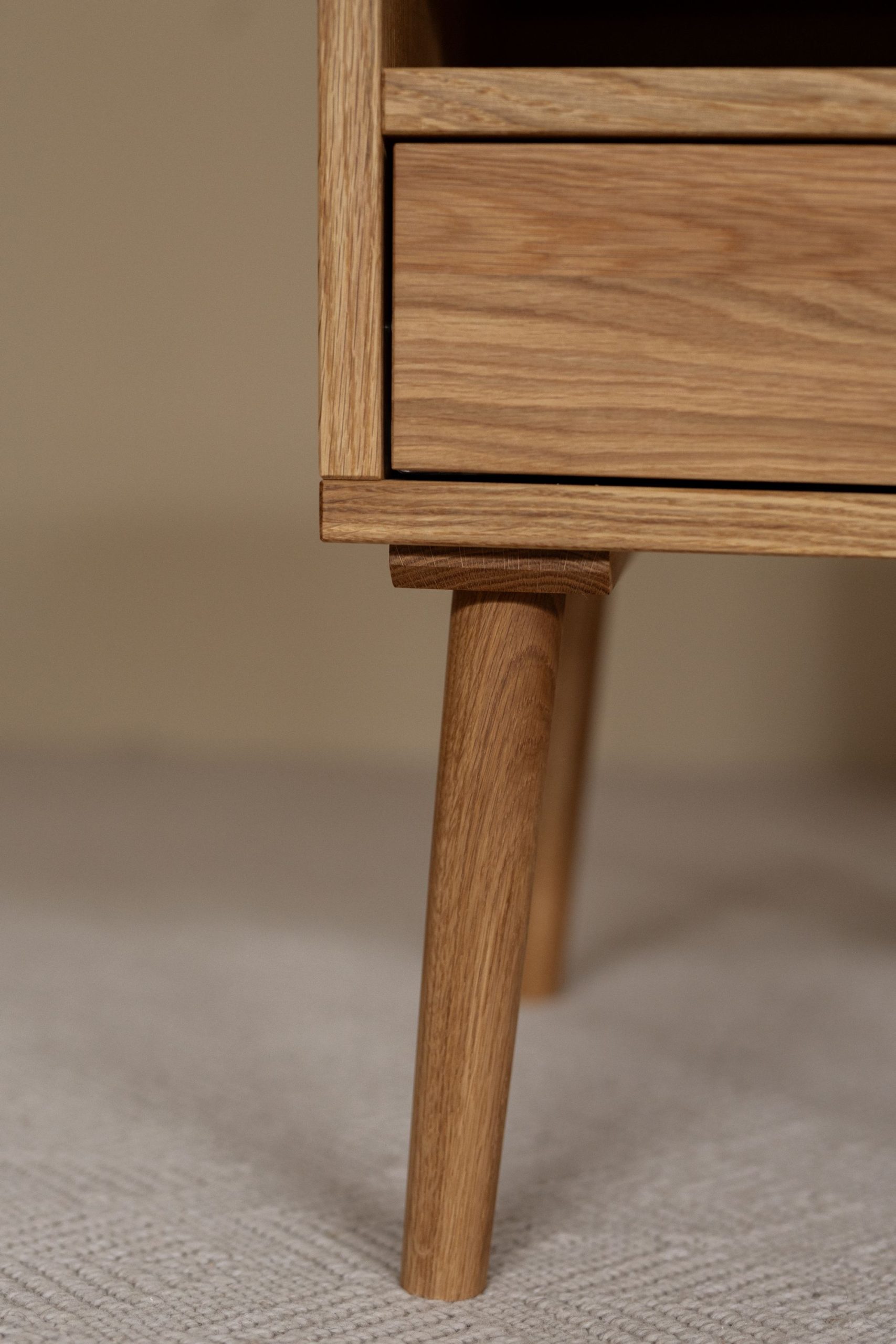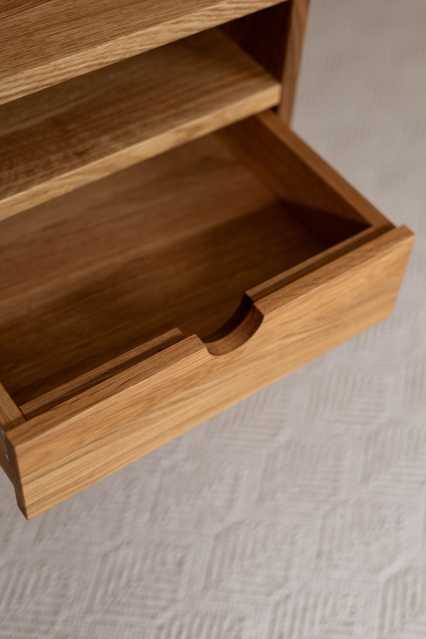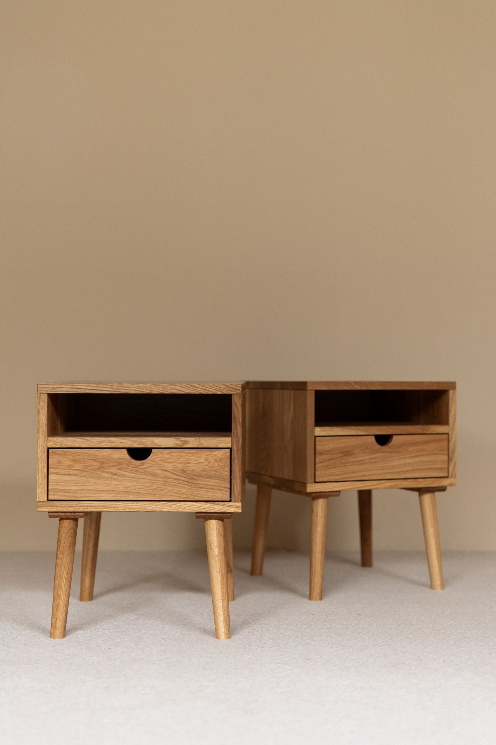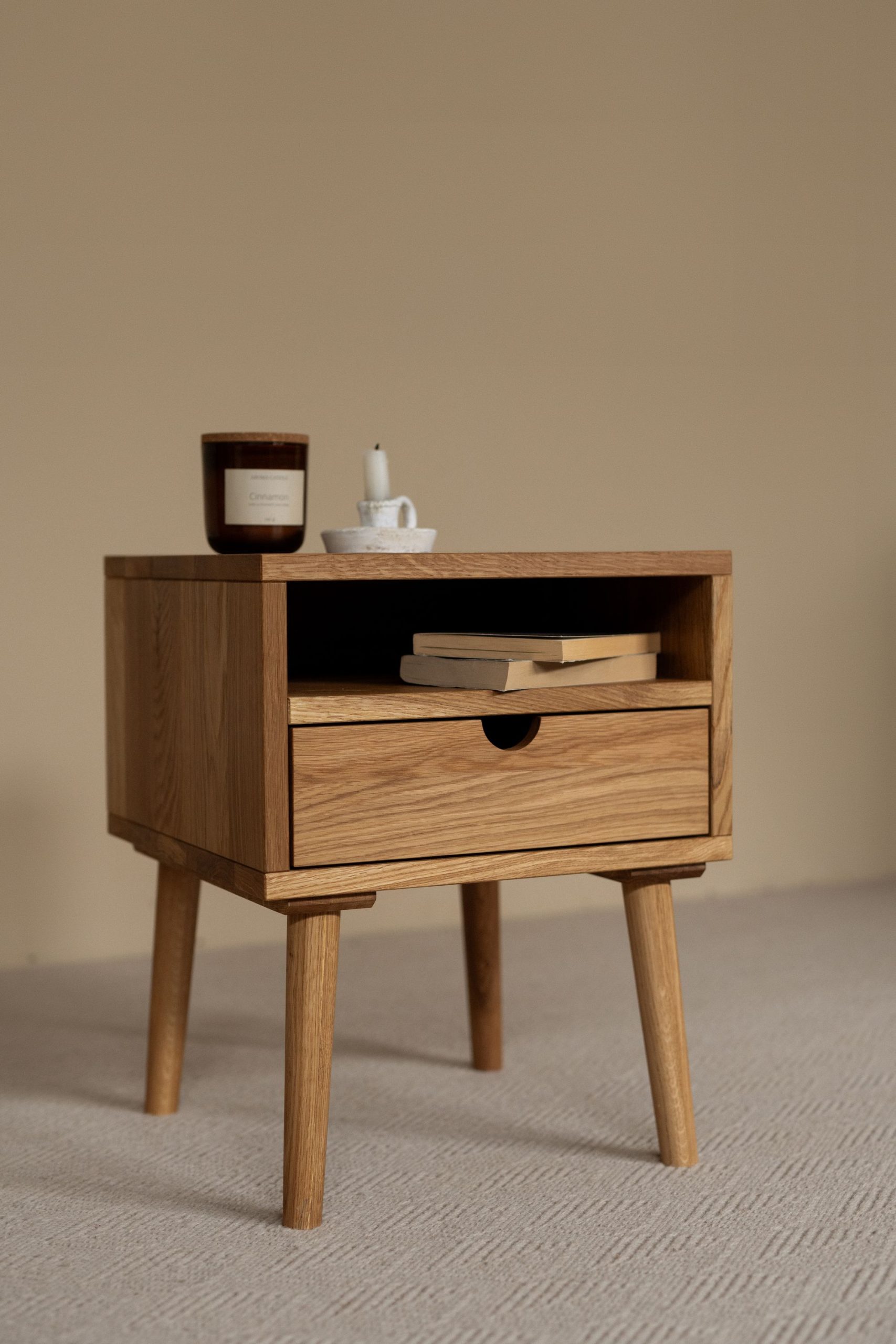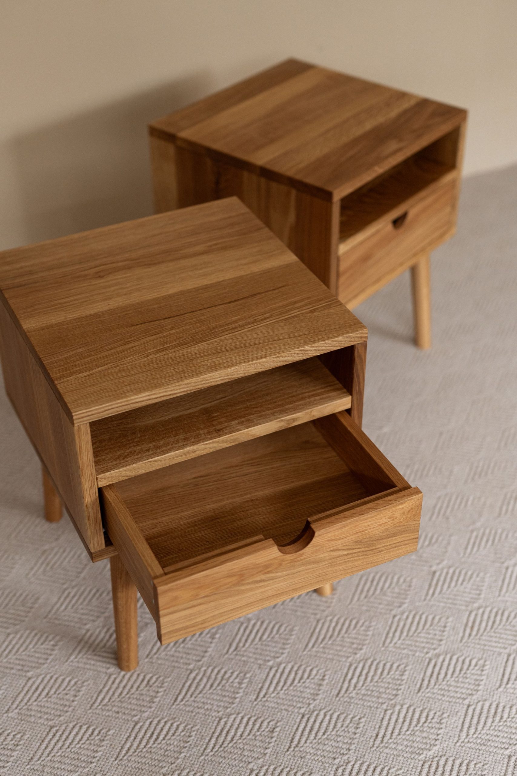Прикроватная тумба из дуба. Простые формы, тёплая текстура дерева. Удобный ящик для мелочей — всё под рукой, ничего лишнего. Сделано вручную, чтобы служить долго и радовать каждый день.